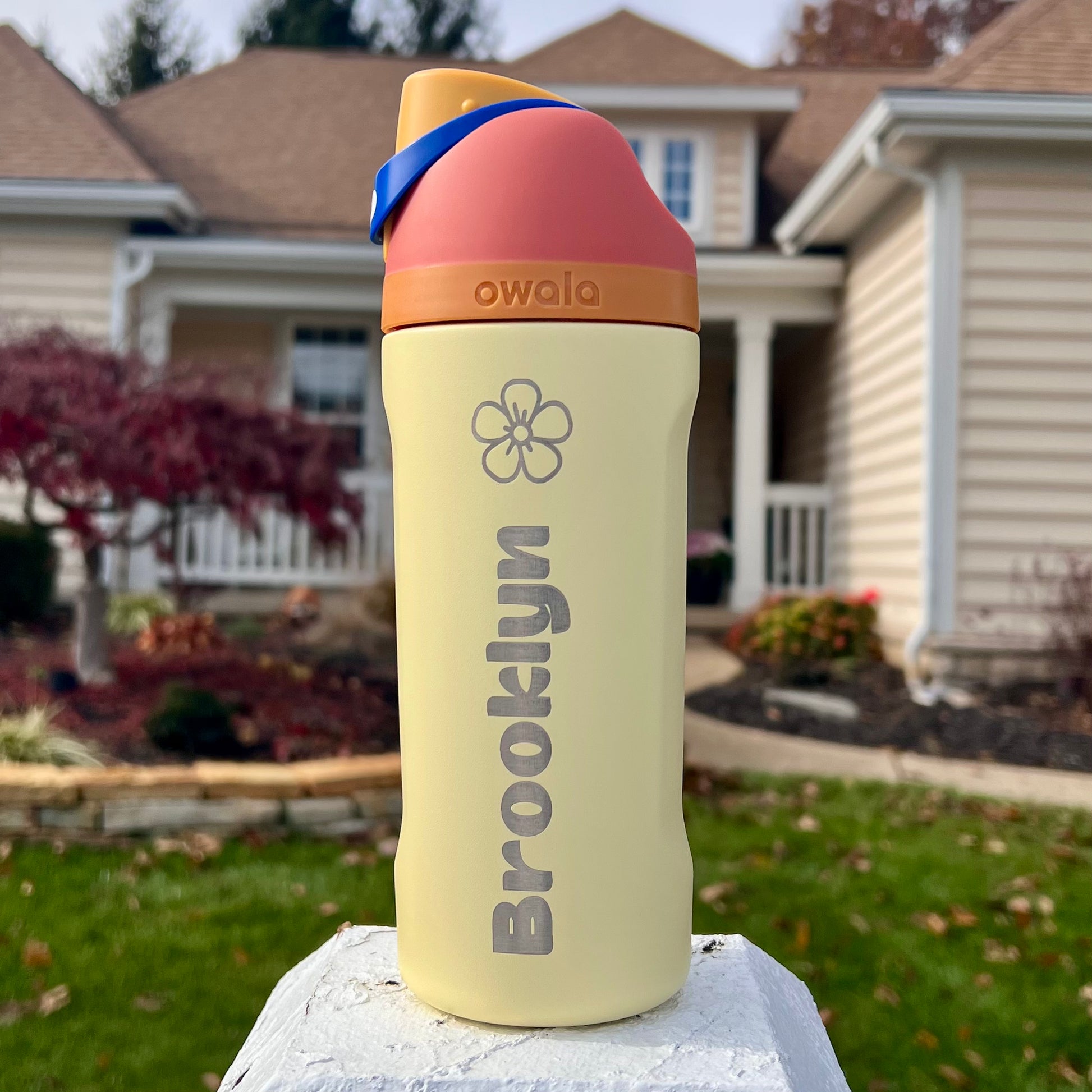 Engraved 16oz Owala Water FreeSip kids water bottle available in 9 cool colors! Add an embellishment at no additional charge! Thoughtful gift for back to school, family trip, camp, or teams!