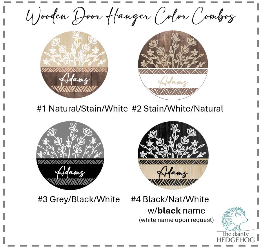 Door hanger is available in 15" or 18” round as shown. The 18" is the standard door size, and the 15" is great for smaller doors or for a wall hanging. If you're interested in a larger one, please reach out.