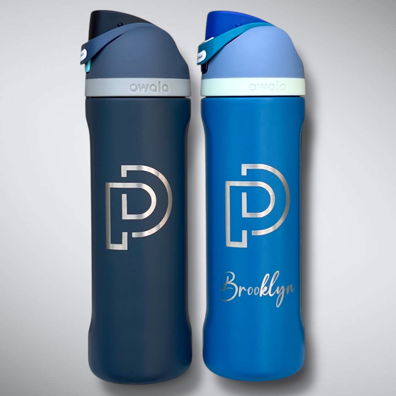 Engraved Owala Water FreeSip 24oz water bottle with Premier Dance logo and your name. If you want just the logo (no name—like the Foggy Tide image in the listing), just put “blank” in the name portion of the customization requirement when you order.