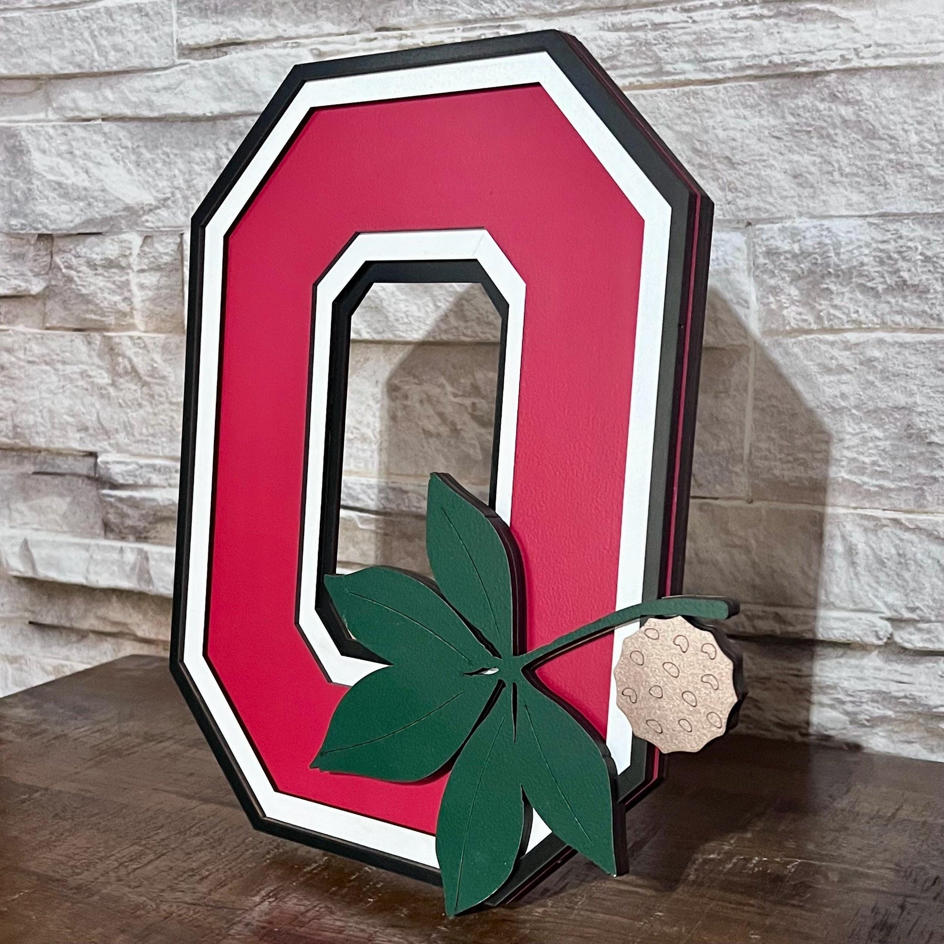 Six Layer 13"+ tall Ohio State University Block O Buckeye sign with stand