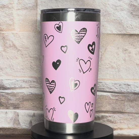 Valentines Day 20oz Coffee Tumbler with full-wrap Hearts or Lips & Hearts engraving